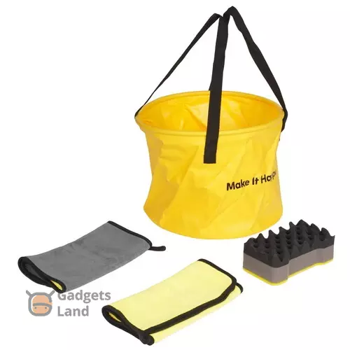 Набор для уборки позволит быстро и комплексно очистить загрязнения, придать обновленный внешний вид. Складное ведро на 20 литров - изготовлено из высокопрочного ПВХ-брезента защищенного от протечек. Конструкция ведра складывается в компактную и удобную форму и не позволяет складываться в наполненном состоянии. Волнистая двусторонняя губка высокой плотности для улучшенного результата очистки и защиты лакокрасочного покрытия. Губку легко сушить и она устойчива к износу. Двусторонняя салфетка высокой плотности из микрофибры предназначена для влажной и сухой уборки. Полотенце незаменимо при очистке и полировке стёкол и зеркал. Микрофибра притягивает пыль, поглощает жидкости и не оставляет разводы. Данный набор подходит не только для уборки дома но и для мытья любимого авто.